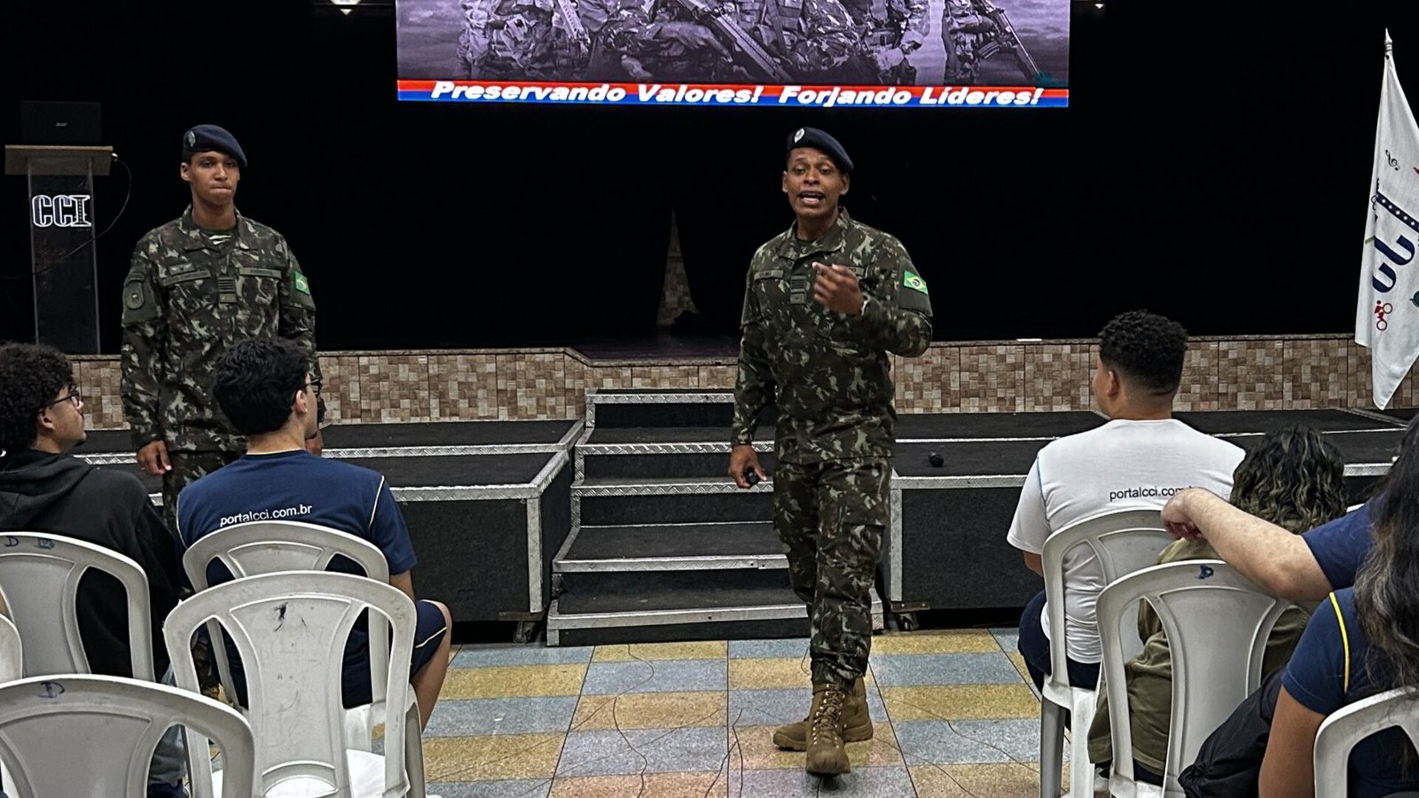 A apresentação também contou com vídeos sobre o treinamento militar, conteúdos motivacionais e, ao final, um momento aberto para perguntas, no qual os alunos puderam esclarecer dúvidas e conhecer melhor essa possibilidade de carreira.