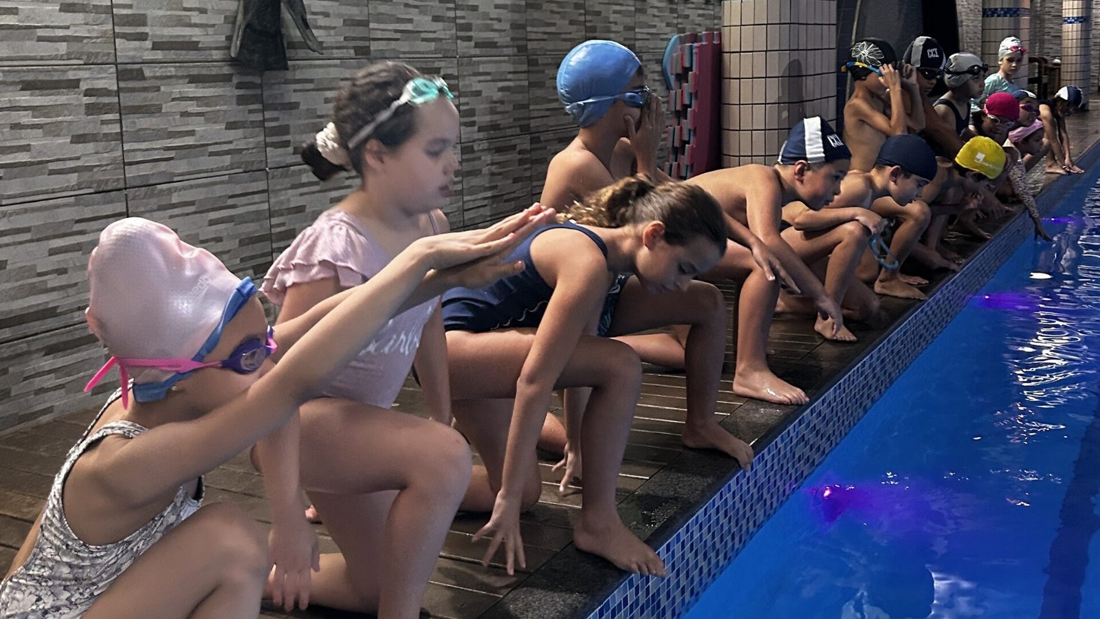 Nas aulas de natação, os estudantes do 1º ao 4º ano, orientados pelo professor Wallace Sousa, vivenciaram atividades voltadas à adaptação ao meio líquido, etapa essencial para o desenvolvimento de qualquer prática aquática, especialmente o mergulho.