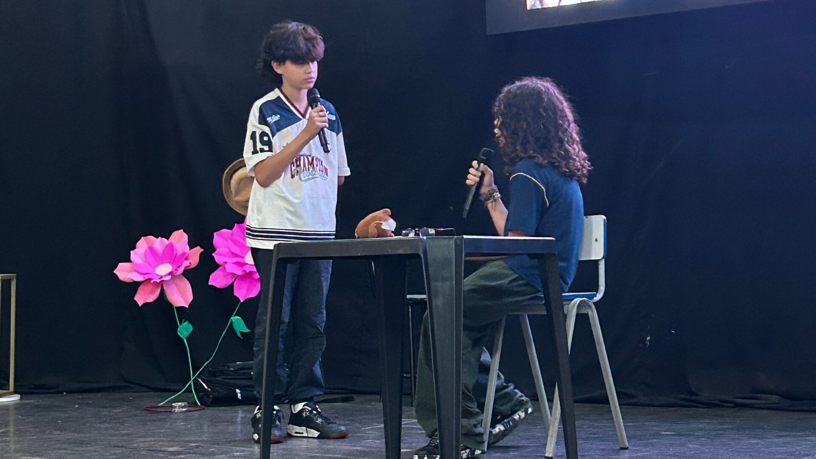 A atividade reuniu estudantes do 8º ano em apresentações com declamações, dramatizações e produções artísticas, estabelecendo conexões entre os poemas, os temas do livro e reflexões sobre identidade e transformação. Com organização e criatividade, os grupos evidenciaram domínio de conteúdo e sensibilidade nas interpretações.