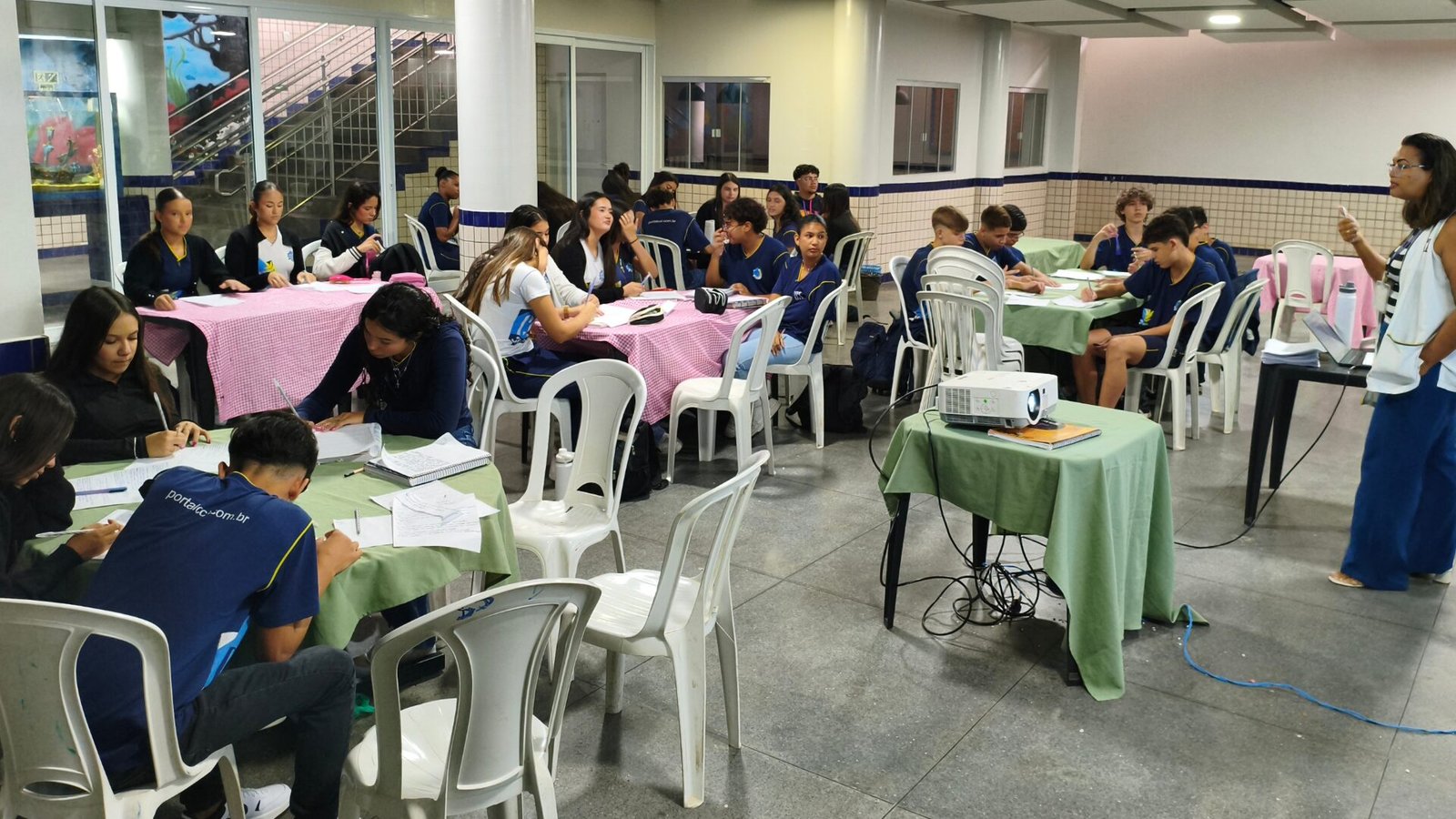 No projeto de Avaliação Literária (A.L.), a professora Débora Urcino desenvolveu uma proposta interdisciplinar a partir do livro Jasmins, da autora Claudia Nina, que retrata a trajetória de Yasmin, uma jovem que passa a visitar uma idosa em uma casa de repouso e, ao longo dessa convivência, se depara com a solidão, o abandono e as fragilidades do envelhecimento.